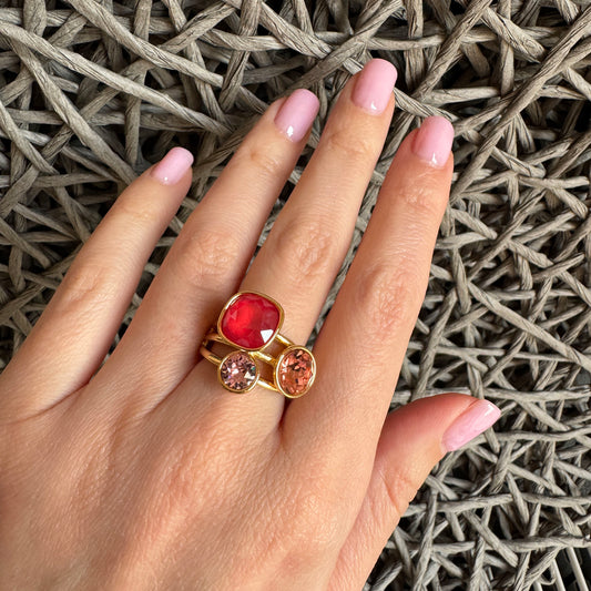 Pierścionek z malinowym kryształkiem Bohm (France)